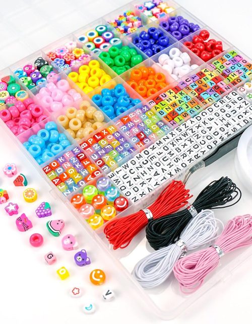 Dowsabel Bracelet Making Kit, Beads for Bracelets Making Pony, Kandi, Polymer Clay, Smile Face & Letter Beads for Jewelry Making, DIY Arts and Crafts Gifts Toys for Girls Age 6-12